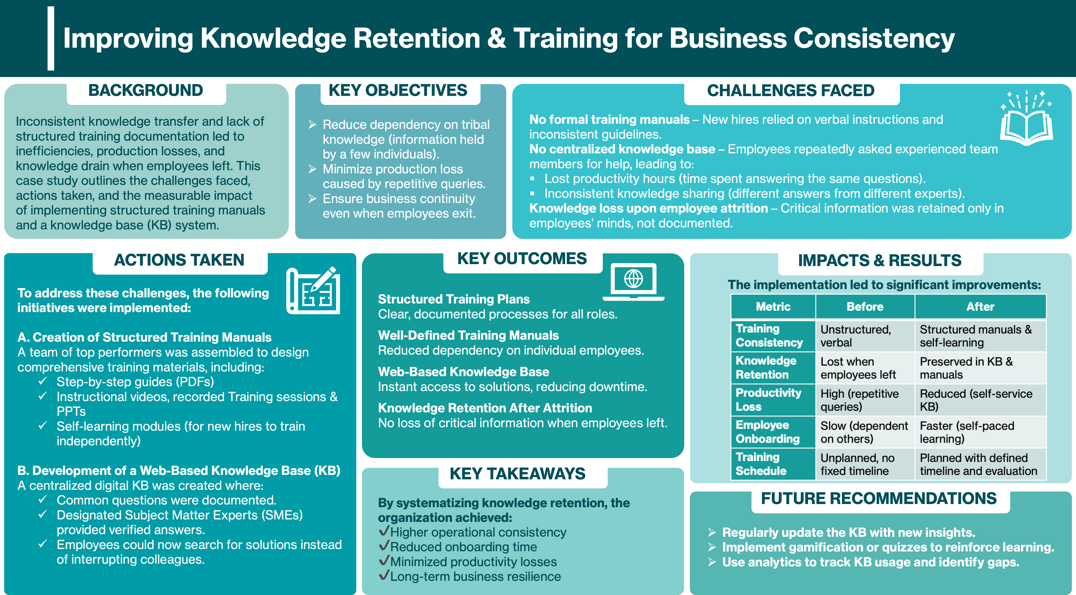 Each case demonstrates measurable outcomes—higher efficiency, improved customer satisfaction, cost savings, faster delivery, and stronger retention. Together, they offer practical lessons on building scalable, transparent, and future-ready operations.